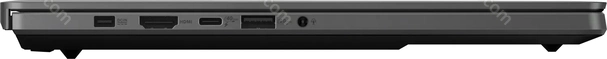 - 1x USB4 с поддержкой DisplayPort 2.1 (40Gb/s, PD-Out, поддержка зарядки устройства PD-In), 1x USB-C 3.1 с поддержкой DisplayPort 2.1 (10Gb/s, PD-Out, поддержка зарядки устройства PD-In), 2x USB-A 3.1 (10Gb/s), 1x HDMI 2.1, 1x комбинированный аудиоразъём 3,5 мм Line-In/Out, 1x microSD (UHS-II), 1x DC In ASUS Slim Power 'Rectangle' (поддержка зарядки устройства)