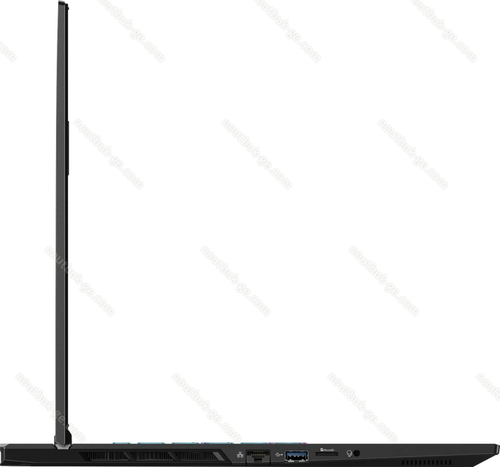 - 1x USB4 с DisplayPort 1.4 (40Gb/s, PD-Out 15W, сетевой разъём питания PD-In 90W), 1x USB-C 3.1 с DisplayPort (10Gb/s, сетевой разъём питания PD-In), 1x USB-A 3.1 (10Gb/s, с поддержкой зарядки устройств), 1x USB-A 3.1 (10Gb/s), 1x USB-A 2.0 (480Mb/s), 1x HDMI 2.1, 1x 3.5 мм аудио-разъём линейный вход/выход, 1x RJ-45 (2.5GBase-T, Intel Killer E3100G), 1x microSD, 1x DC-In разъём питания