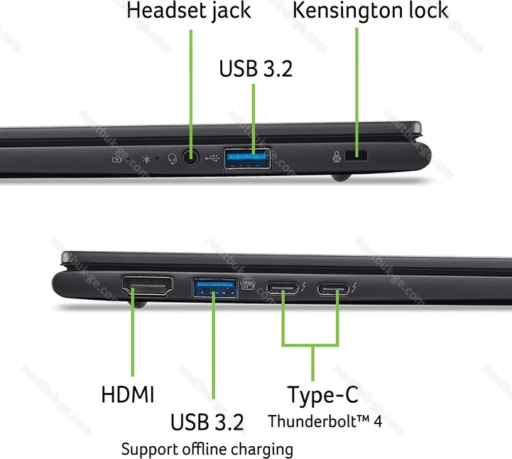 - 2x Thunderbolt 4 / USB4 с DisplayPort 1.4 (40Gb/s, PD-Out, сетевой разъём питания PD-In), 1x USB-A 3.0 (5Gb/s, с поддержкой зарядки устройств), 1x USB-A 3.0 (5Gb/s), 1x HDMI 2.1, 1x 3.5 мм аудио-разъём линейный вход/выход