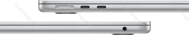 - 2x Thunderbolt 4 / USB4 с DisplayPort 1.4 (40Gb/s, PD-Out, сетевой разъём питания PD-In), 1x 3.5 мм аудио-разъём, 1x DC-In Apple MagSafe 3 (сетевой разъём)