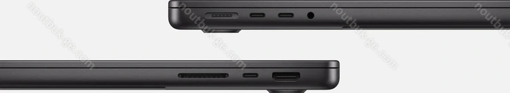 3x Thunderbolt 4 / USB4 с поддержкой DisplayPort 1.4 (40Gb/s, PD-Out, поддержка зарядки устройства PD-In), 1x HDMI 2.1, 1x комбинированный аудиоразъём 3,5 мм, 1x SD Card, 1x DC In Apple MagSafe 3 (поддержка зарядки устройства)