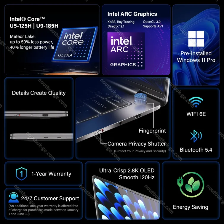 Купить ноутбук Geekom GeekBook X14 Pro, Titanium Gray, Core Ultra 5 125H, 32GB RAM, 1TB SSD по низкой цене с бесплатной доставкой по всей Грузии | |