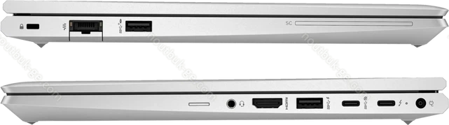 1x Thunderbolt 4 / USB4 с DisplayPort 1.4 (40Gb/s, PD-Out, сетевой разъём питания PD-In), 1x USB-C 3.1 с DisplayPort 1.4 (10Gb/s, BC, сетевой разъём питания PD-In), 1x USB-A 3.0 (5Gb/s, с поддержкой зарядки устройств), 1x USB-A 3.0 (5Gb/s), 1x HDMI 2.1, 1x 3.5 мм аудио-разъём, 1x RJ-45 (1000Base-T), 1x SmartCard (считыватель смарт-карт), 1x DC-In разъём питания