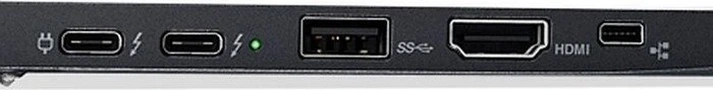 - 1x Thunderbolt 3 / USB-C 3.1 с DisplayPort 1.4 (40Gb/s, PD-Out, сетевой разъём питания PD-In), 1x Thunderbolt 3 / USB-C 3.1 с DisplayPort 1.4 (40Gb/s, PD-Out), 2x USB-A 3.0 (5Gb/s), 1x HDMI, 1x microSD