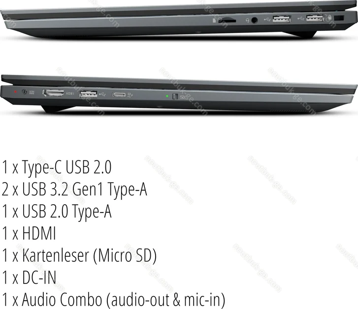 - 1x USB-C 2.0 (480Mb/s), 2x USB-A 3.0 (5Gb/s), 1x USB-A 2.0 (480Mb/s), 1x HDMI, 1x 3.5 мм аудио-разъём, 1x microSD, 1x DC-In разъём питания