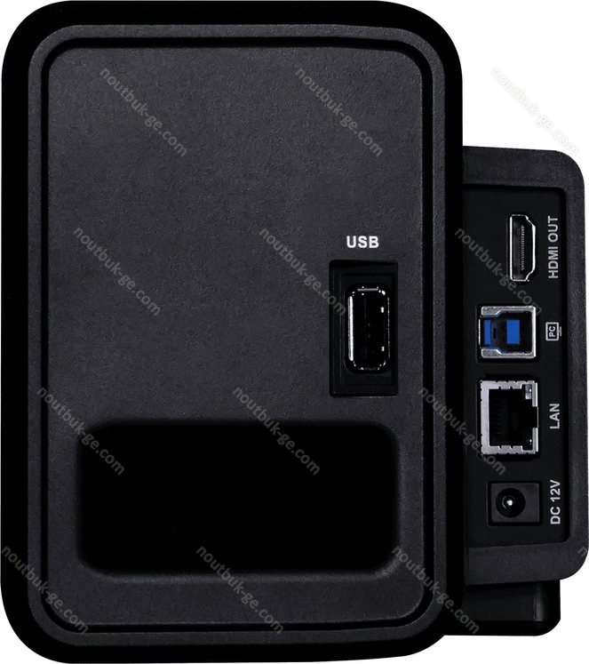 - 1x USB-B 3.0 (5Gb/s), 2x USB-A 2.0 (480Mb/s), 1x RCA component via RJ-45, 1x HDMI, 1x линейный вход 3.5 мм/Out, 1x RJ-45 (1000Base-T), 1x serial (RS-232), 1x штекер для подключения к электросети (разъём питания)