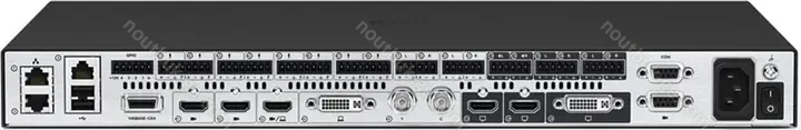 - 1x HDMI, 1x DisplayPort, 1x BNC, 1x RJ-45 LAN, 1x DC In hollow socket (mains connection)