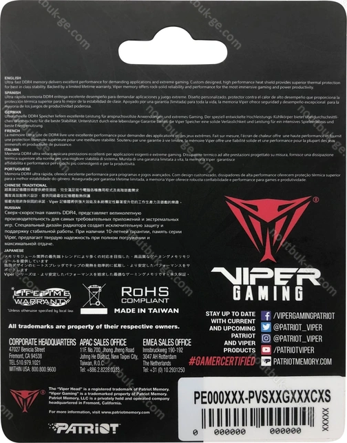 Купить недорого Patriot Viper Steel SO-DIMM 16GB, DDR4-2666, CL18-18-18-43: в кредит 0% или рассрочку с бесплатной доставкой по Грузии