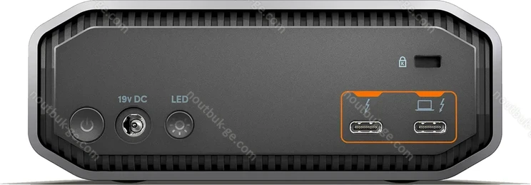 - 1x Thunderbolt 3 / USB-C 3.1 (40Gb/s, socket), 1x Thunderbolt 3 Out / USB-C 3.1 with дисплейPort-Out 1.4 (40Gb/s)