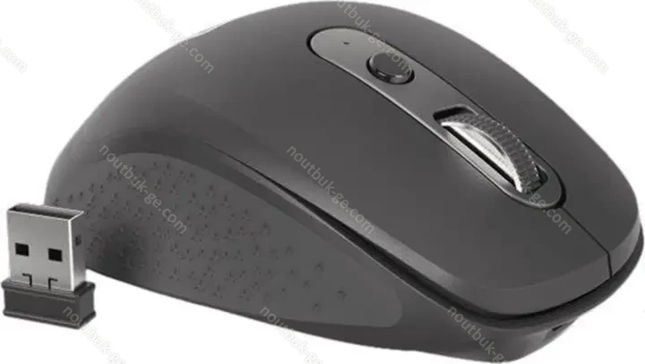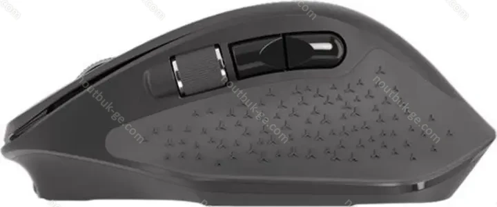 - Bluetooth-соединения через сменную кнопку (3 устройства), упор для большого пальца, индикация зарядки, пониженный шум щелчков, противоскользящая поверхность (прорезиненная по бокам), складной ресивер