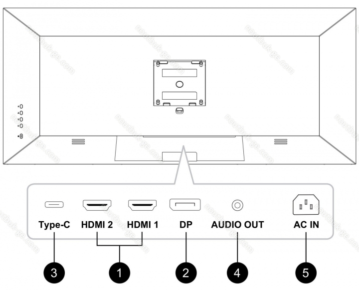 - 1x HDMI 2.0 (60Hz@3440x1440), 1x HDMI 1.4 (60Hz@3440x1440), 1x DisplayPort 1.2 (60Hz@3440x1440), 1x USB-C 3.0 with DisplayPort 1.2 (60Hz@3440x1440)