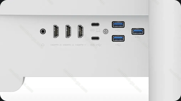 - 3x HDMI 2.0, 1x USB-C 3.0 with DisplayPort (исходящий, 5Gb/s, PD 65W), 1x USB-C 3.0 (входящий, 5Gb/s, BC 7.5W), 4x USB-A 3.0 (входящий, 5Gb/s), 1x 3.5mm jack выход на наушники, 1x AC-In C14 (подключение к электросети)