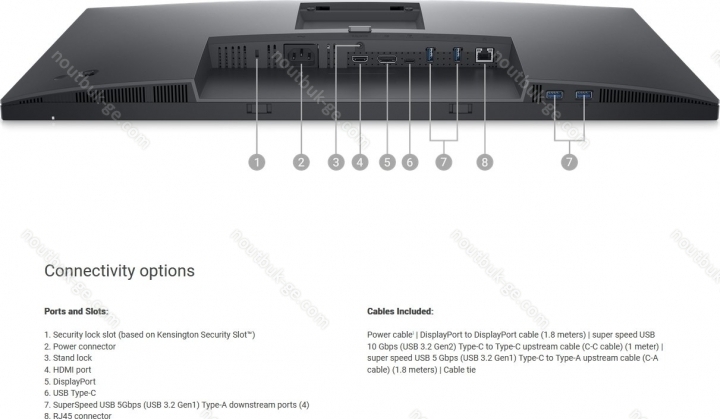 - тонкая рамка экрана, EPEAT Gold, USB-C Мощность Delivery (90W), D-pad, замок безопасности, HDCP 2.3
