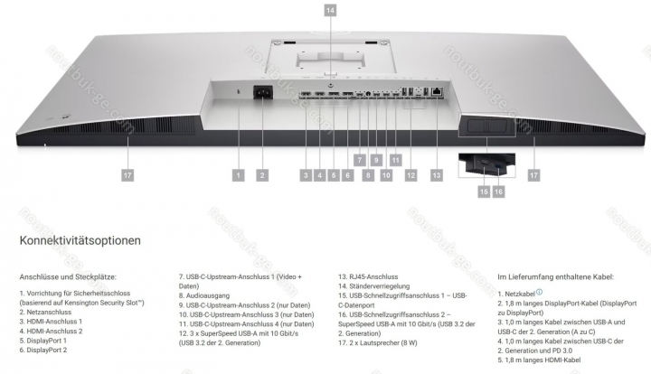 тонкая рамка экрана, EPEAT Gold, USB-C Power Delivery (90W), механические клавиши с D-pad, картинка в картинке, замок безопасности (Kensington), KVM switch (USB x4), HDCP 2.2