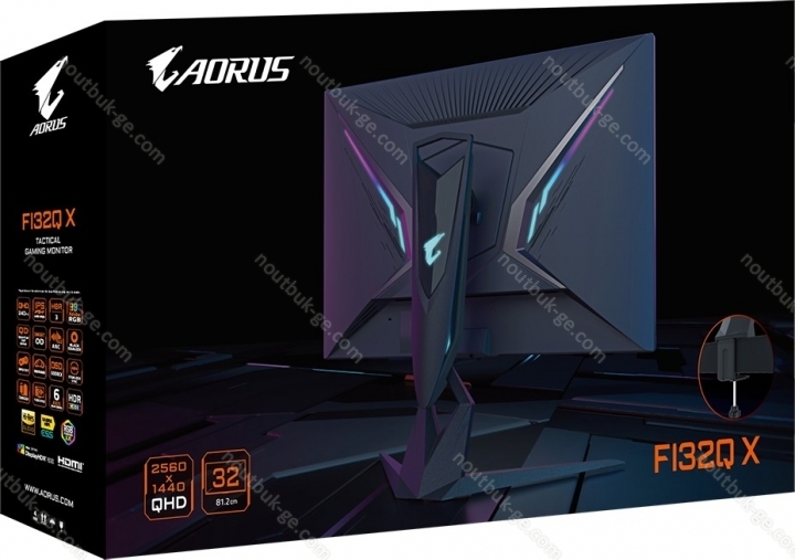 - тонкая рамка экрана, USB-C Мощность Delivery (18W), D-pad, картинка в картинке, замок безопасности, Подсветка сзади (RGB), подставка с ручкой, KVM switch