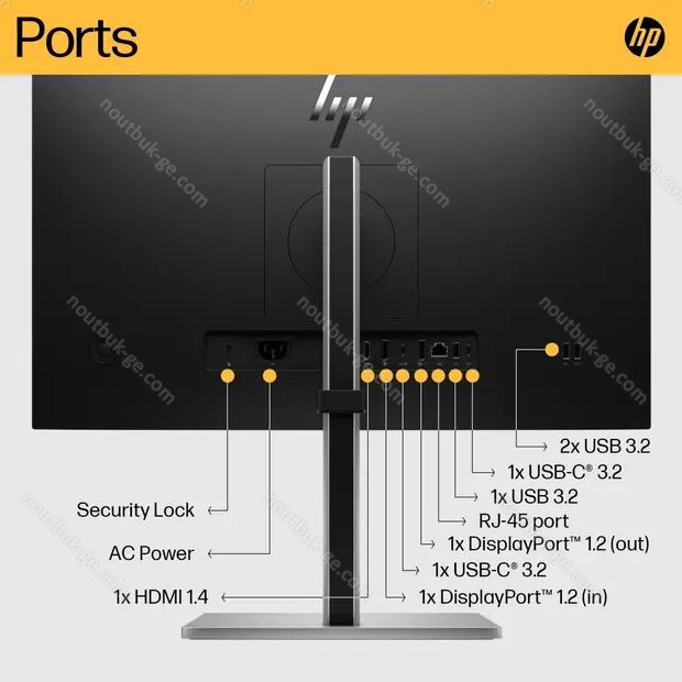 - 1x HDMI 1.4 (75Hz@1920x1080), 1x DisplayPort 1.2 (75Hz@1920x1080), 1x DisplayPort-Out 1.2, 1x USB-C 3.0 with DisplayPort 1.2 (Upstream, 5Gb/s, PD 65W, 75Hz@1920x1080), 1x USB-C 3.0 (downstream, 5Gb/s, PD 15W), 1x USB-A 3.0 (downstream, 5Gb/s, BC), 2x USB-A 3.0 (downstream, 5Gb/s), 1x RJ-45 1Gb LAN, 1x AC-In C13 (mains connection)