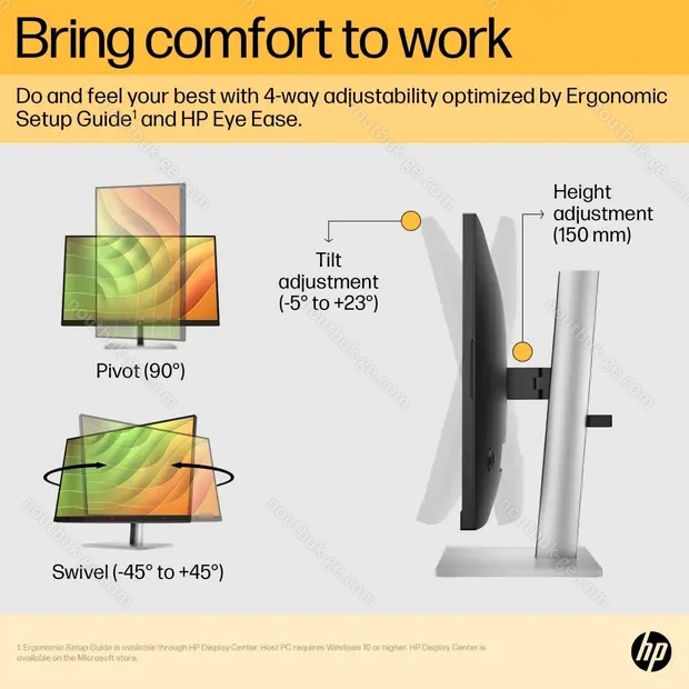 - c подставкой, регулируемая высота (150mm), вращение (±90°), поворот (±45°), наклон (+23°/-5°)