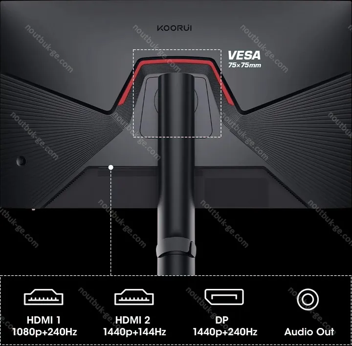 - 2x HDMI 2.0 (144Hz@2560x1440), 1x DisplayPort 1.4 (240Hz@2560x1440), 1x 3.5mm jack (Line-Out)