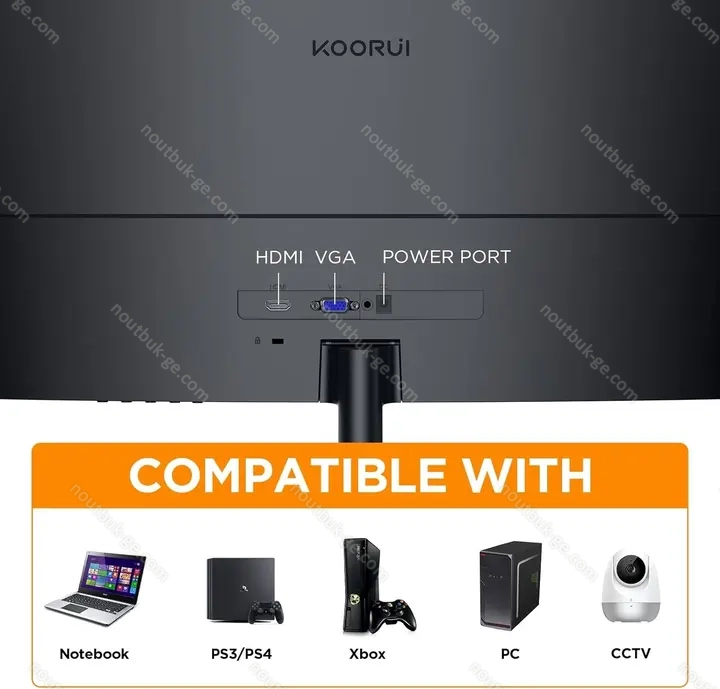 - 1x VGA (170Hz@1920x1080), 1x HDMI, 1x 3.5mm jack, 1x DC In hollow socket (mains connection)