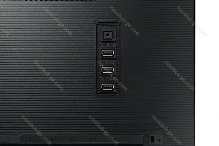 - 1x HDMI 1.4 (75Hz@2560x1440), 1x DisplayPort 1.2 (75Hz@2560x1440), 1x DisplayPort-Out 1.2, 1x USB-C 3.0 with DisplayPort 1.2 (Upstream, 5Gb/s, PD 90W, 75Hz@2560x1440), 3x USB-A 3.0 (downstream, 5Gb/s), 1x 3.5mm jack (Line-Out), 1x RJ-45 1Gb LAN, 1x AC-In C13 (mains connection)