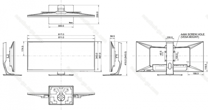 - 817x415x230mm, 817x367x59mm - без подставки